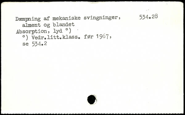 Dæmpning af mekaniske svingninger, 534.28 alment og blandet Absorption, lyd .) .) Vedr.litt.klass. før 19^7, se 534.2