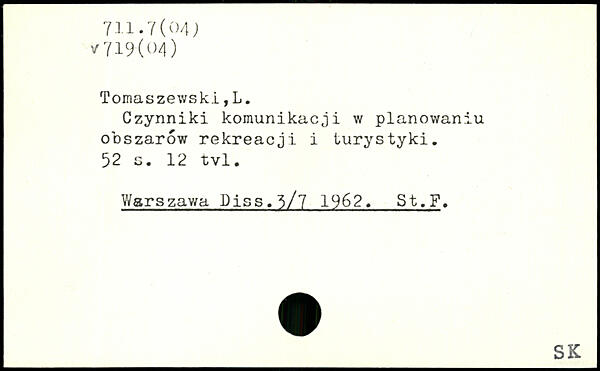 Czynniki komunikacji w planowaniu obszarow rekreacji i turystyki.