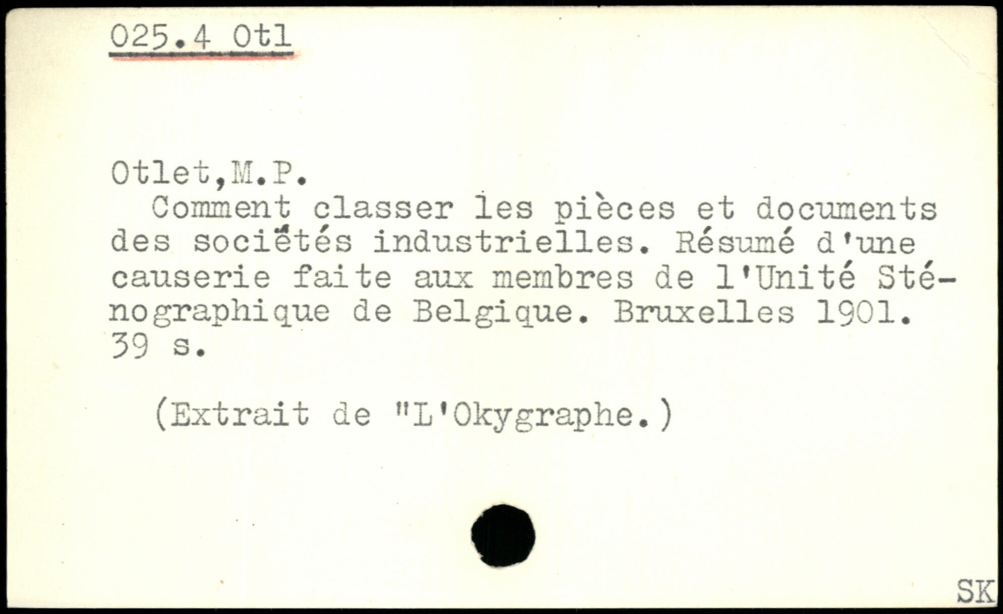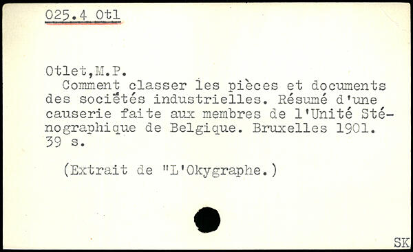 Gomment classer les pièces et documents des sociétés industrielles. Résumé d.une causerie faite aux membres de l'Unité Sténo graphique de Belgique.