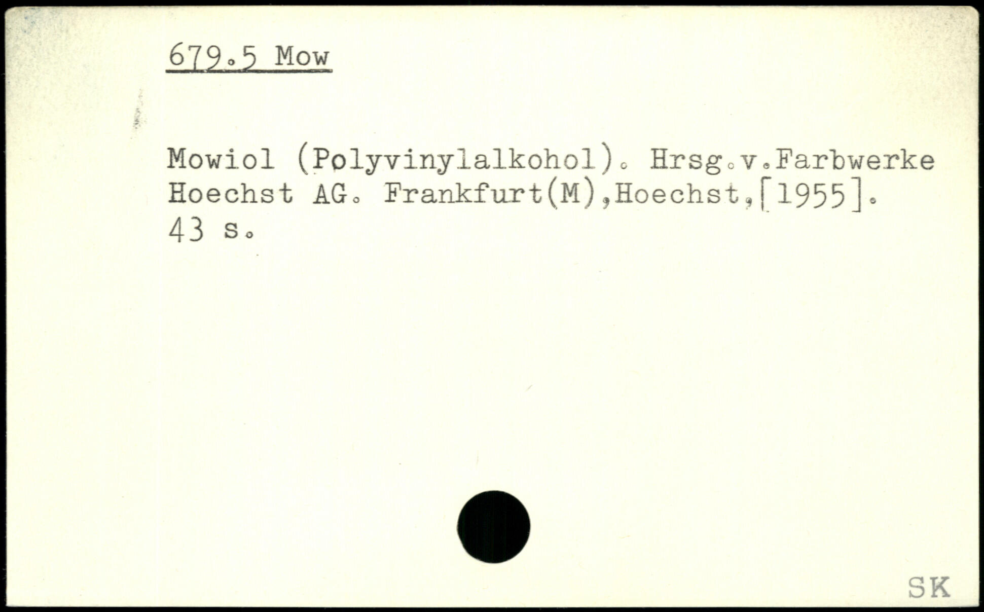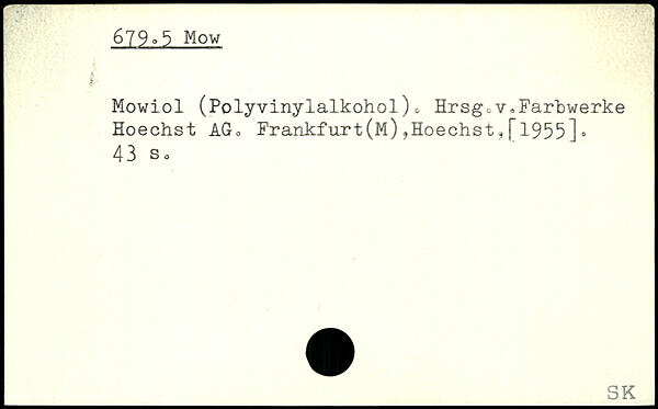 Mowiol (Polyvinylalkohol)c HrsgcV,Farbwerke Hoechst AG, Frankfurt(M),Hoechst,[1955]