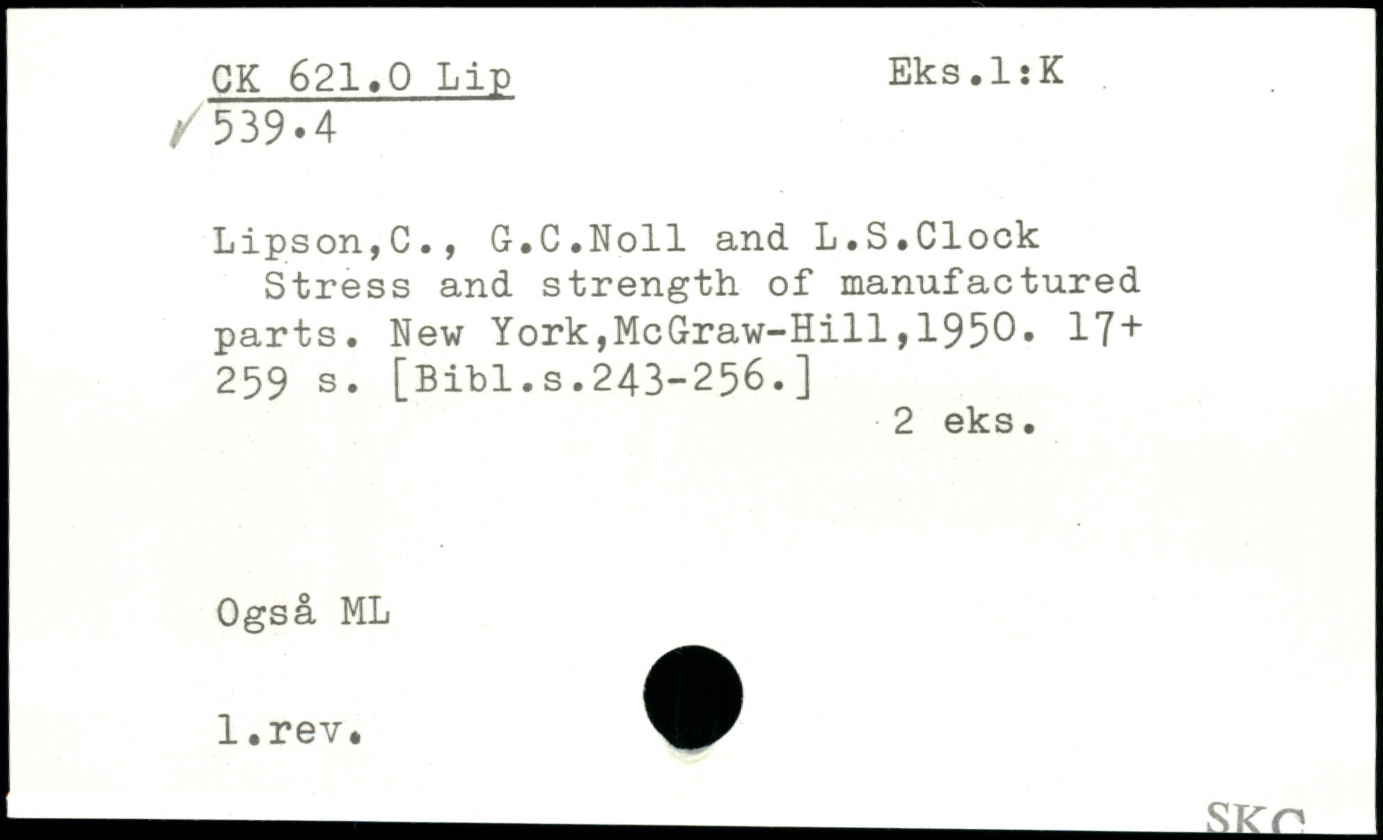 Lipson,C., G.C.Noll and L.S.Clock Stress and strength of manufactured parts.