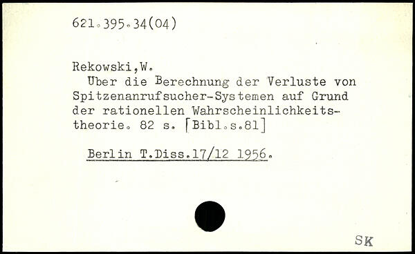 Uber die Berechnung der Verluste von SpitzenanrufSucher-Systemen auf Grund der rationellen Wahrscheinlichkeitstheorie