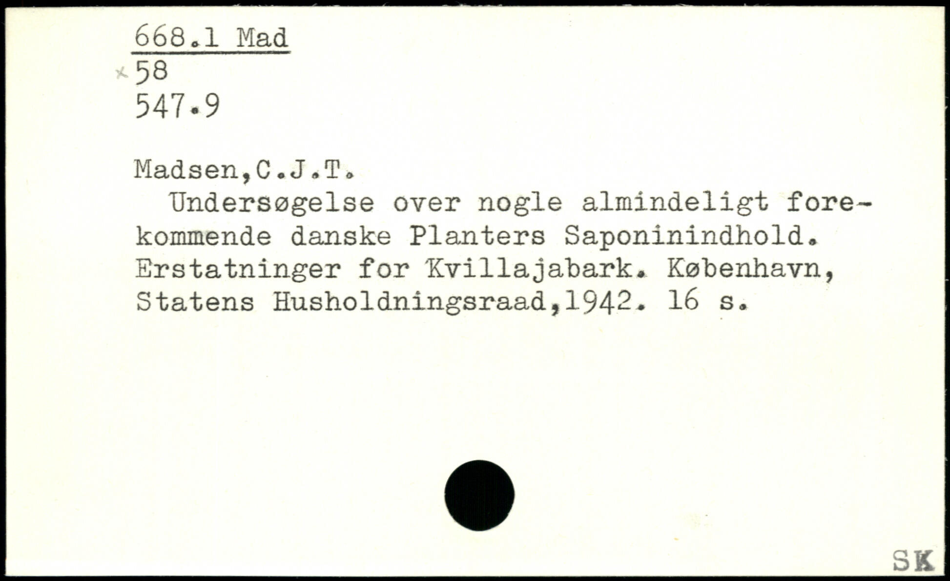 Undersøgelse over nogle almindeligt forekommende danske Planters Saponinindhold. Erstatninger for Kvillajabark.