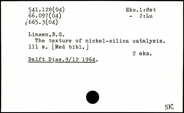 The texture of nickel-silica catalysis. Ill s. [Med bihl,J