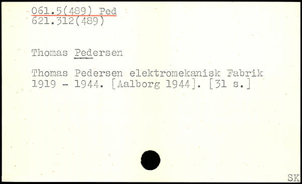 Thomas Pedersen Thomas Pedersen elektromekanisk Fabrik 1919 - 1944.