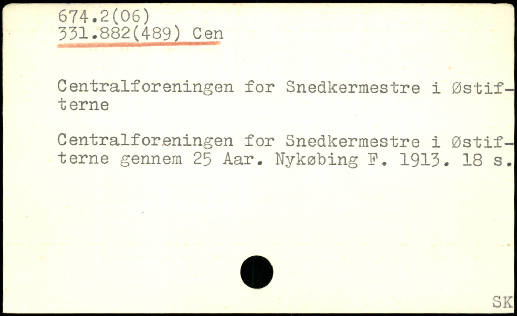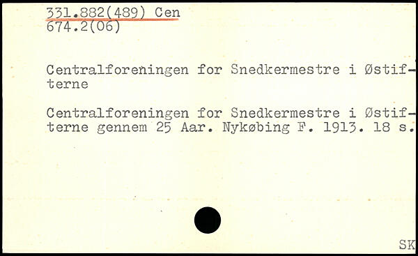 Centralforeningen for Snedkermestre i Østifterne Centralforeningen for Snedkermestre i Østifterne gennem 25 Aar. Nykøbing F. 1913.