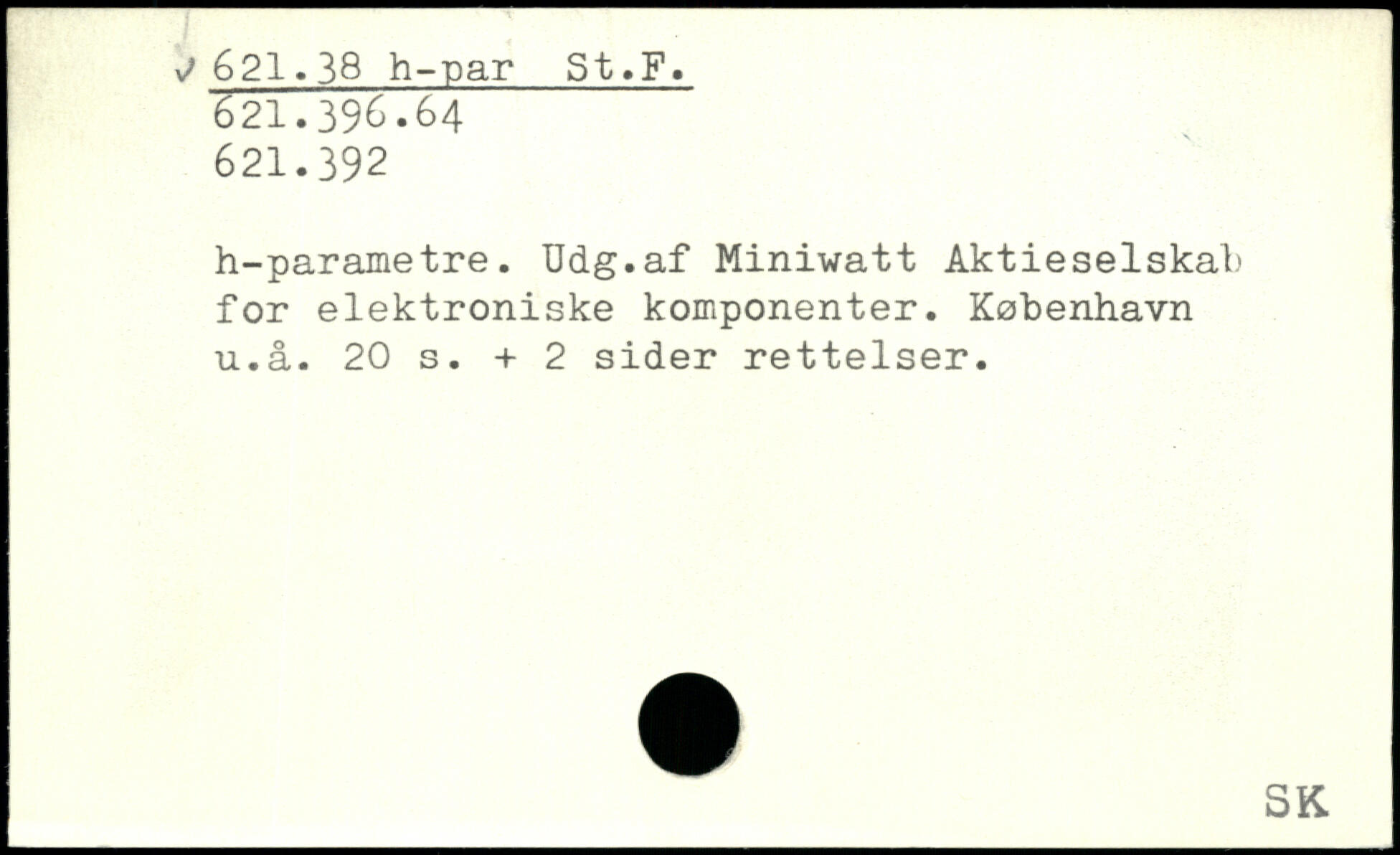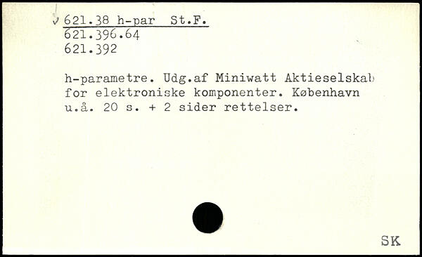 h-parametre. Udg.af Mini-watt Aktieselskal' for elektroniske komponenter. København u.å.