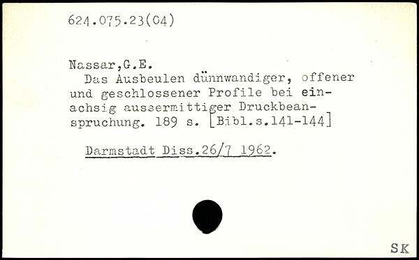 Das Ausbeulen dünnwandiger, offener und geschlossener Profile bei einachsig aussermittiger Druckbeanspruchung.