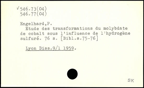 Etude des transformations du molybdate de cobalt sous l'influence de l?hydrogène sulfure