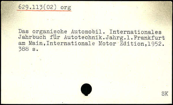Das organische Automobil. Internationales Jahrbuch für Autotechnik.Jahrg.l.
