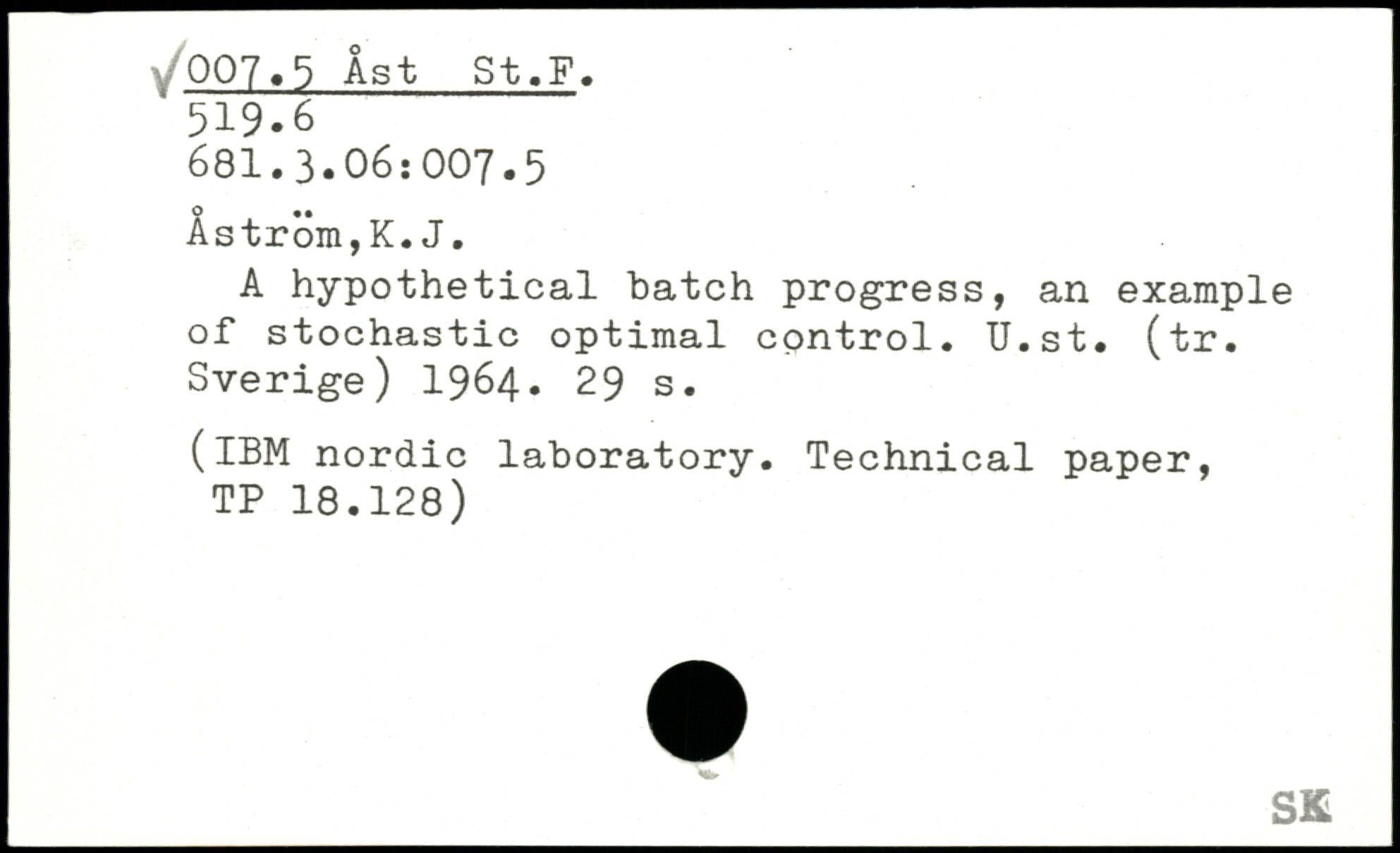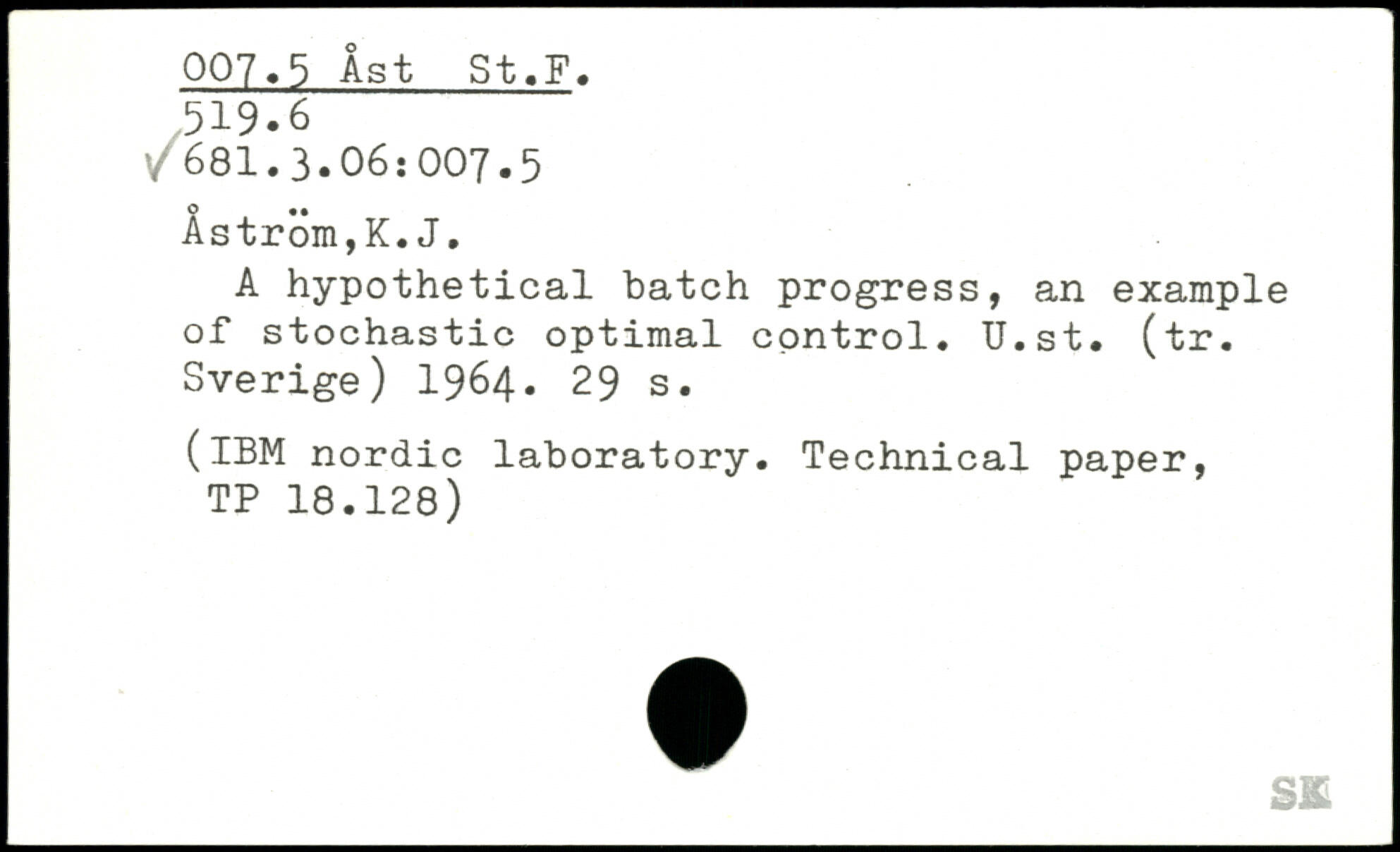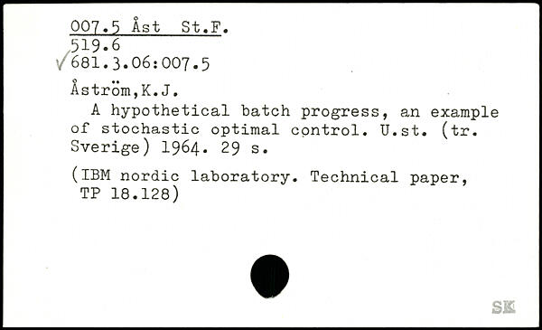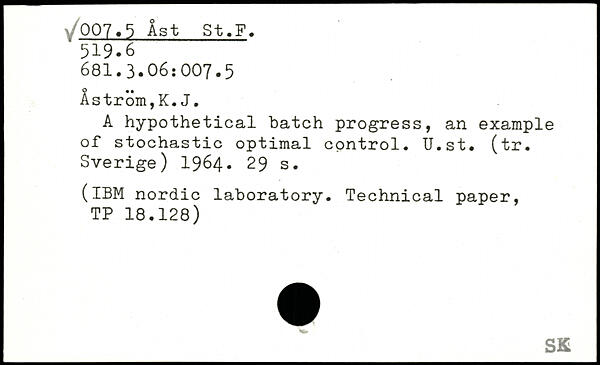 A hypothetical hatch progress, an example of stochastic optimal control. U.st. (tr. Sverige) 1964.
