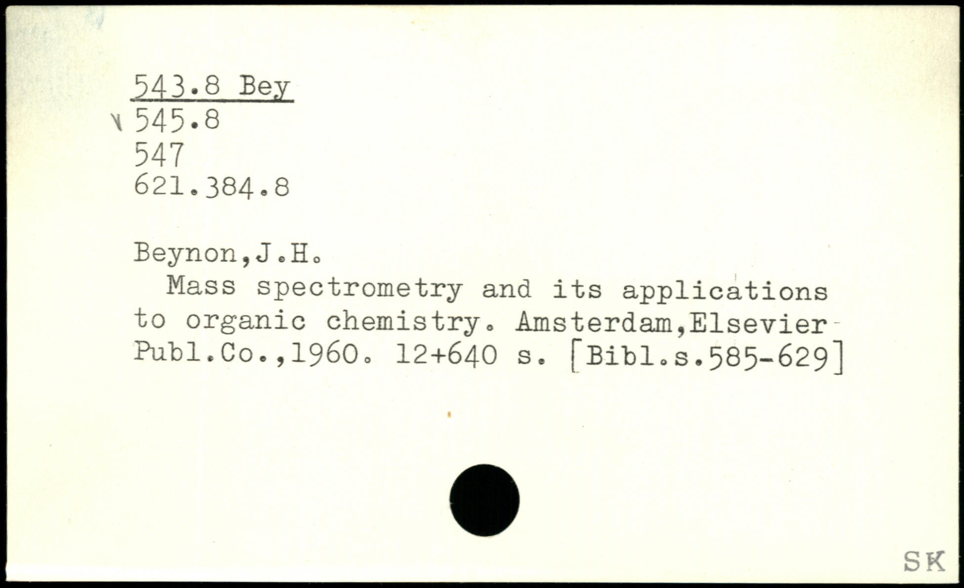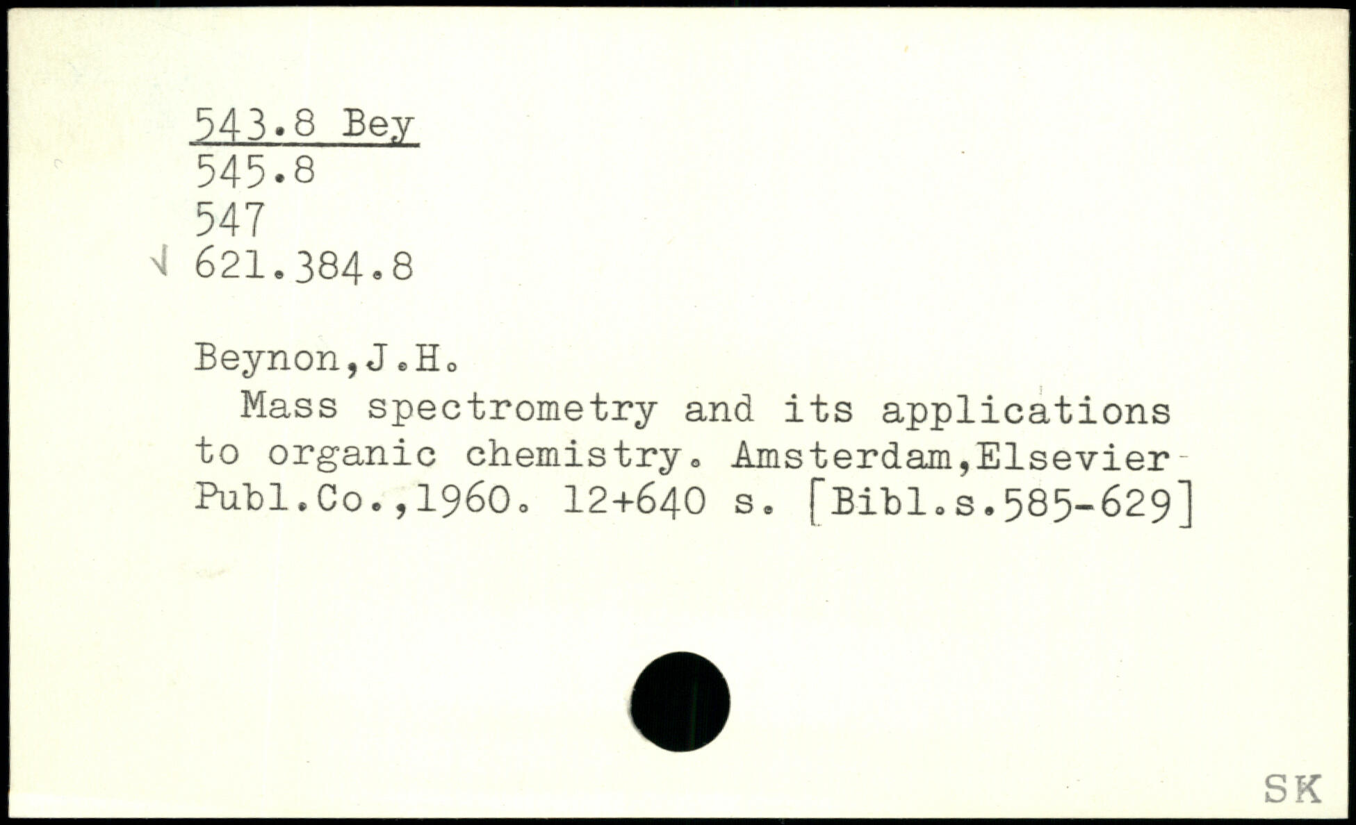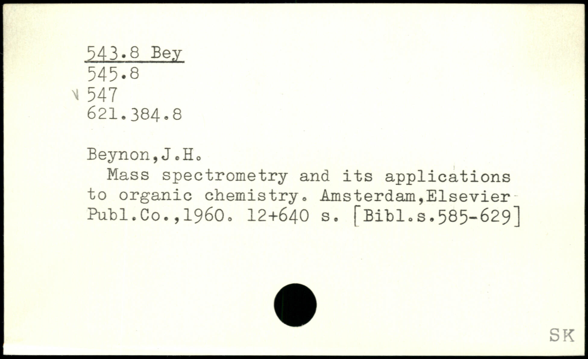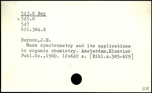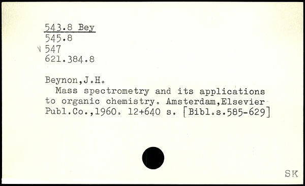 Mass spectrometry and its applications to organic chemistry. Amsterdam,Elsevier Pufcl.Co.,1960.