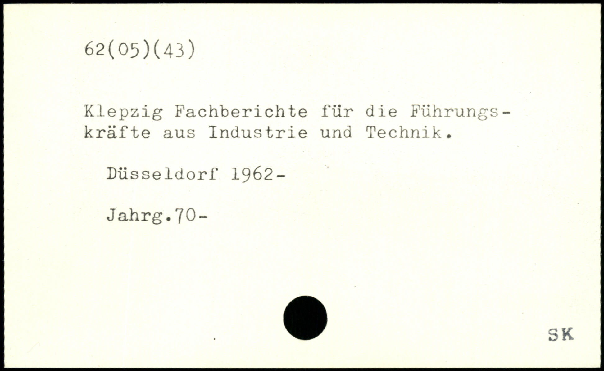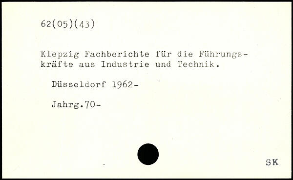 Klepzig Fachberichte für die Führungskräfte aus Industrie und Technik. Düsseldorf 1962- Jahrg.70-