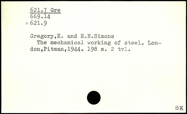 Gregory,E, and E&N.Simons The mechanical working of steel.