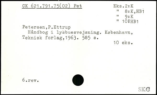Petersen,P.Ettrup Håndbog i lysbuesvejsning. København, Teknisk forlag,19^3, 5^