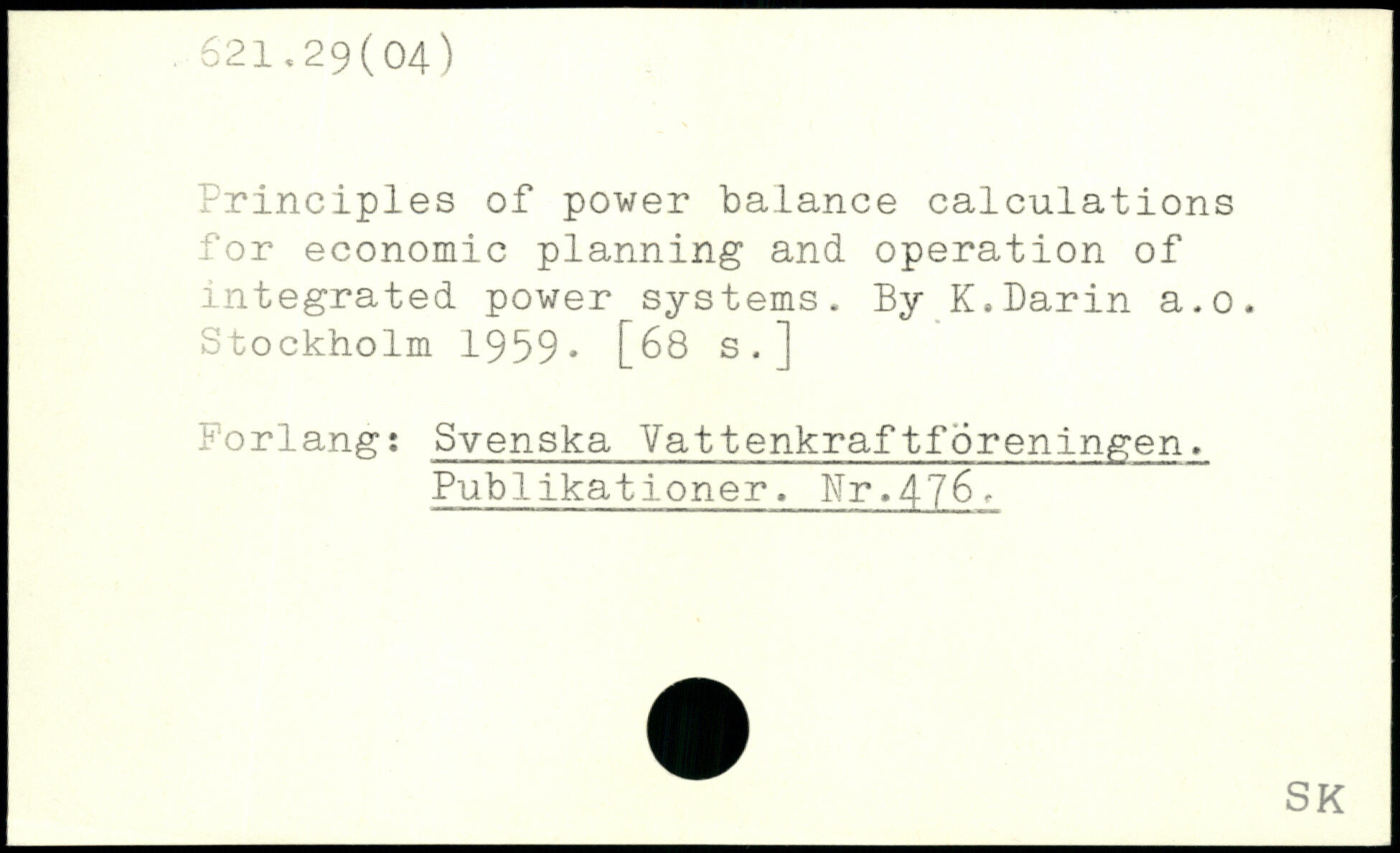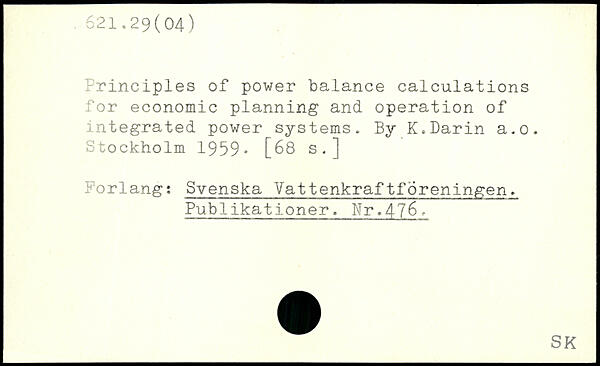 Principles of power balance calculations for economic planning and operation of integrated power systems. By K.Darin a.o.
