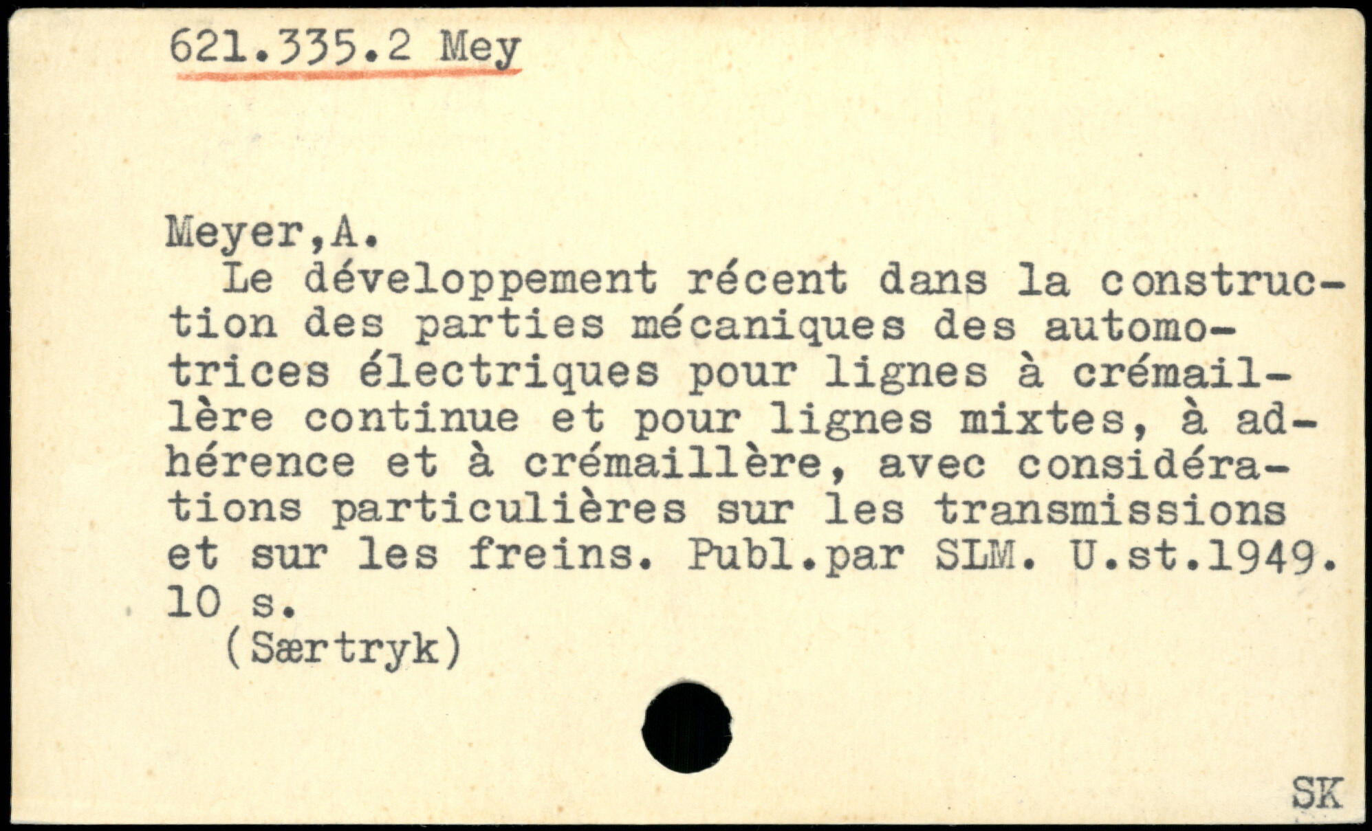 Le développement récent dans la construction des parties mécaniques des automotrices électriques pour lignes à crémaillère continue et pour lignes mixtes, à adhérence et à crémaillère, avec considérations particulières sur les transmissions et sur les freins. Publ.par SLM. U.st.1949.