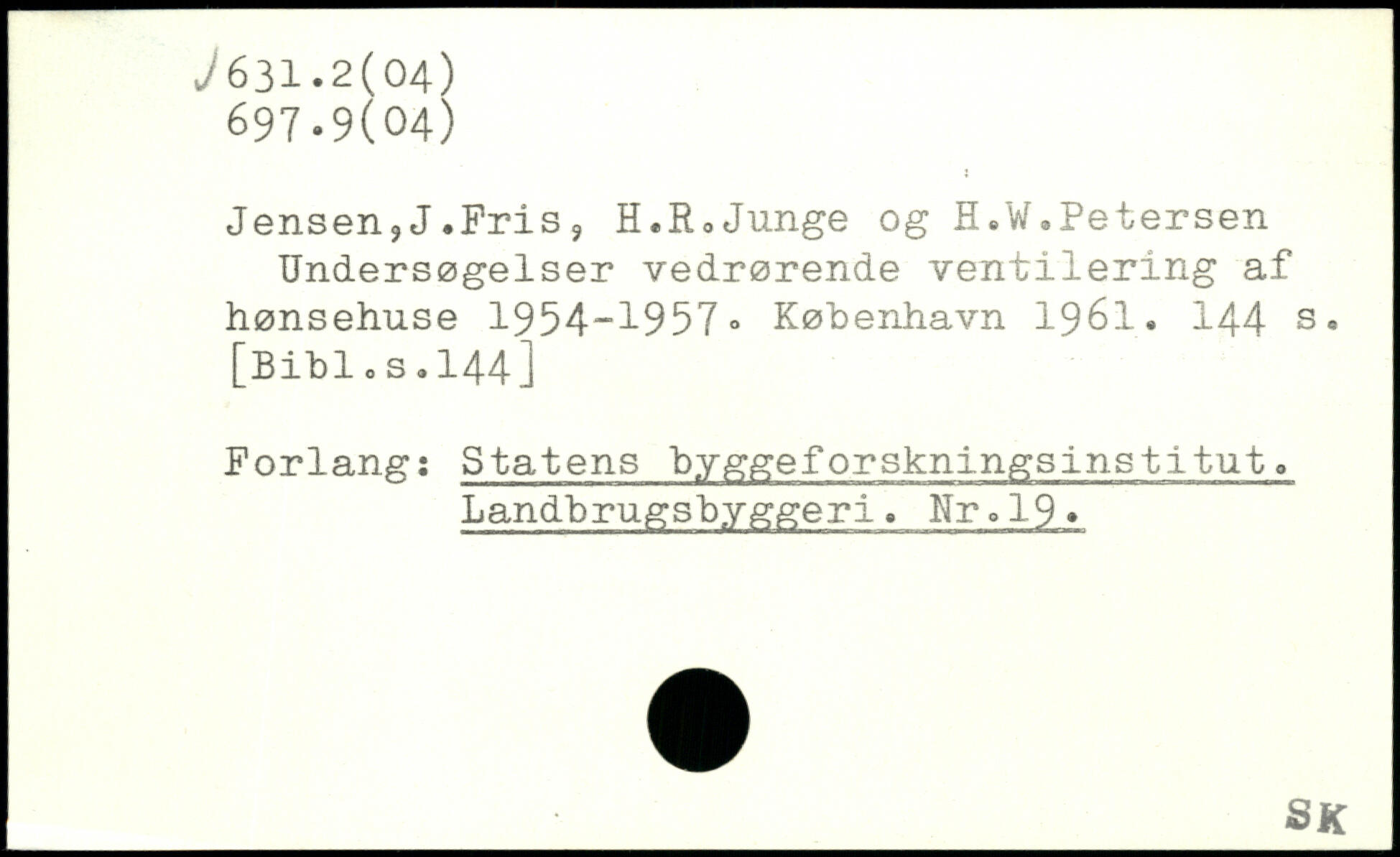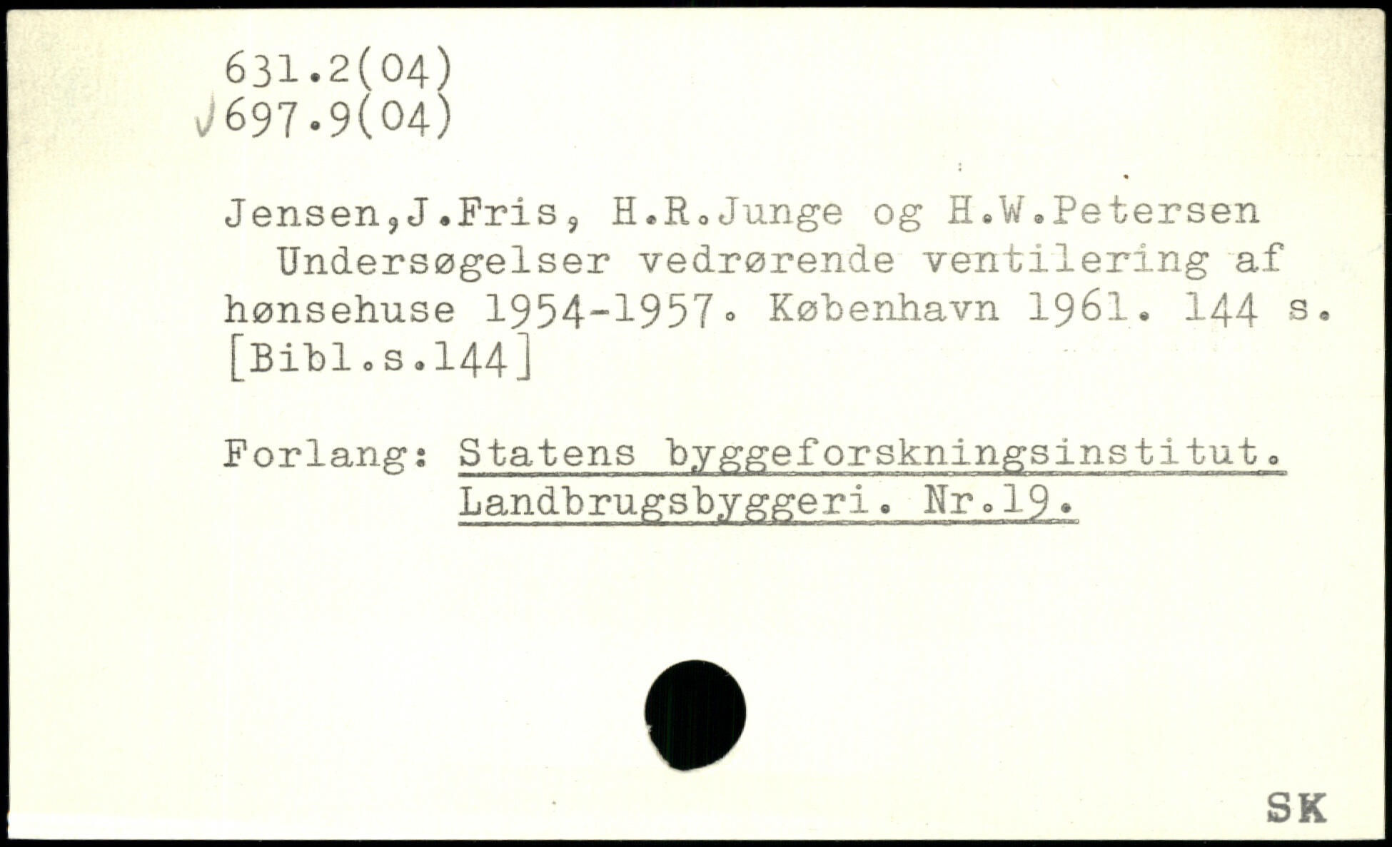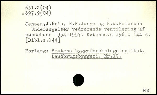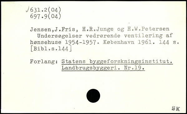 Jensen,J.Fris, H.RoJunge og H.W.Petersen Undersøgelser vedrørende ventilering af hønsehuse 1954-1957”