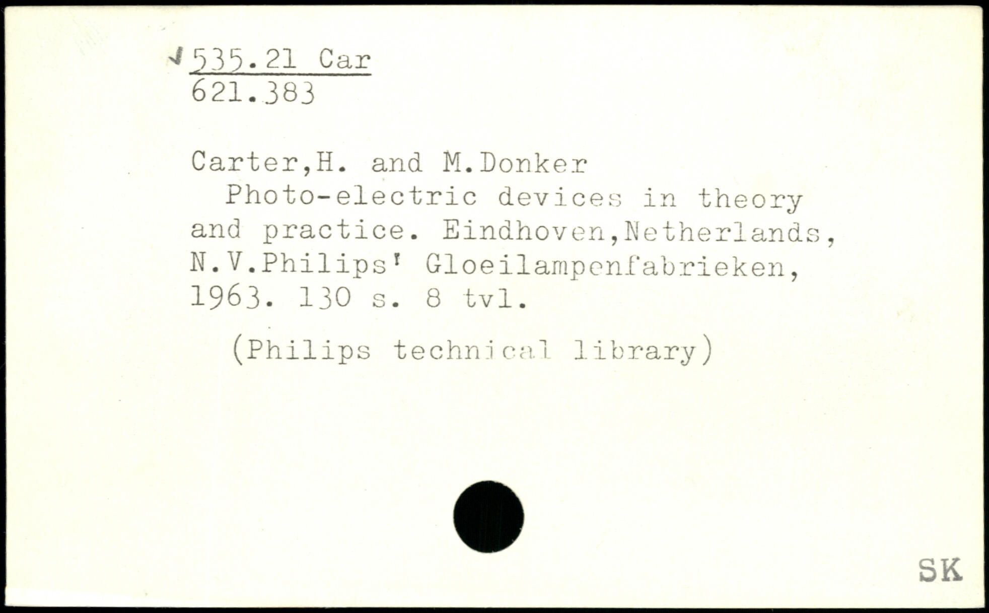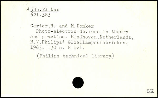 Photo-electric devices in theory and practice. Eindhoven,Netherlands, N.V.Philips 1 Gloeilampenfabrieken, 1963.