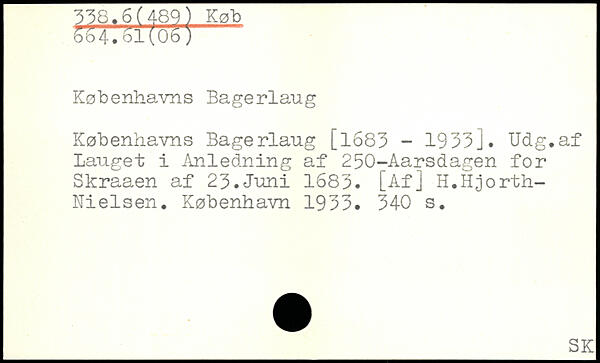 ikloi'rø-- Københavns Bagerlaug Københavns Bagerlaug [1683 - 1933]. Udg.af Lauget i Anledning af 250-Aarsdagen for Skraaen af 23.Juni 1683. [Af] H.Hjorth-Nielsen.