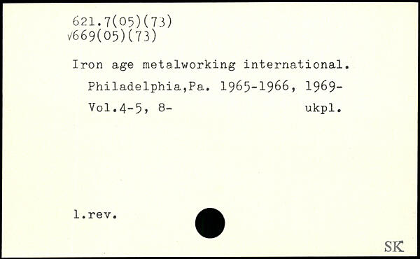 Iron age metalworking international. Philadelphia,Pa. 1965-1966, 1969-