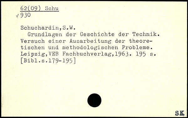 Grundlagen der Geschichte der Technik. Versuch einer Ausarbeitung der theoretischen und methodologisehen Probleme.