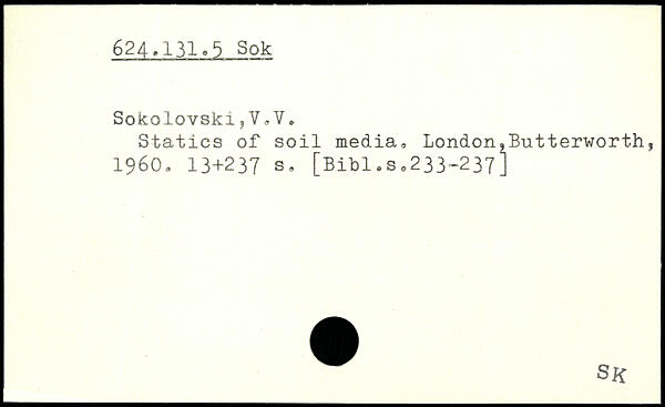 Statics of soil media, London,Butterwort-h, 1960, 13+237 s. [Bibl.s.233-237]