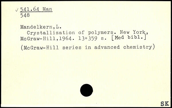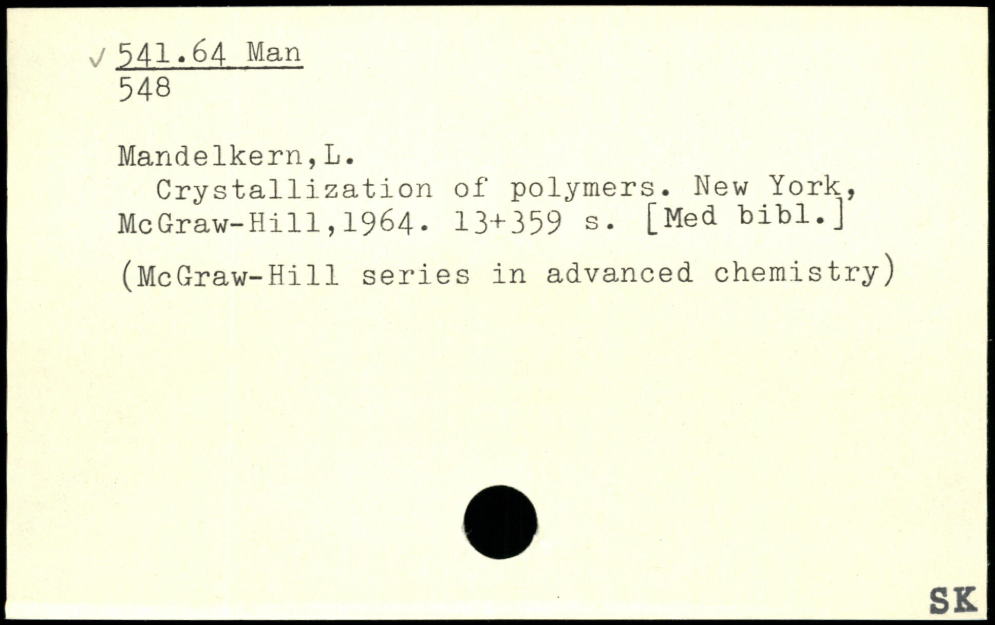 ; Mandelkern,L. Crystallization of polymers. New York, ; McGraw-Hill, 1964.