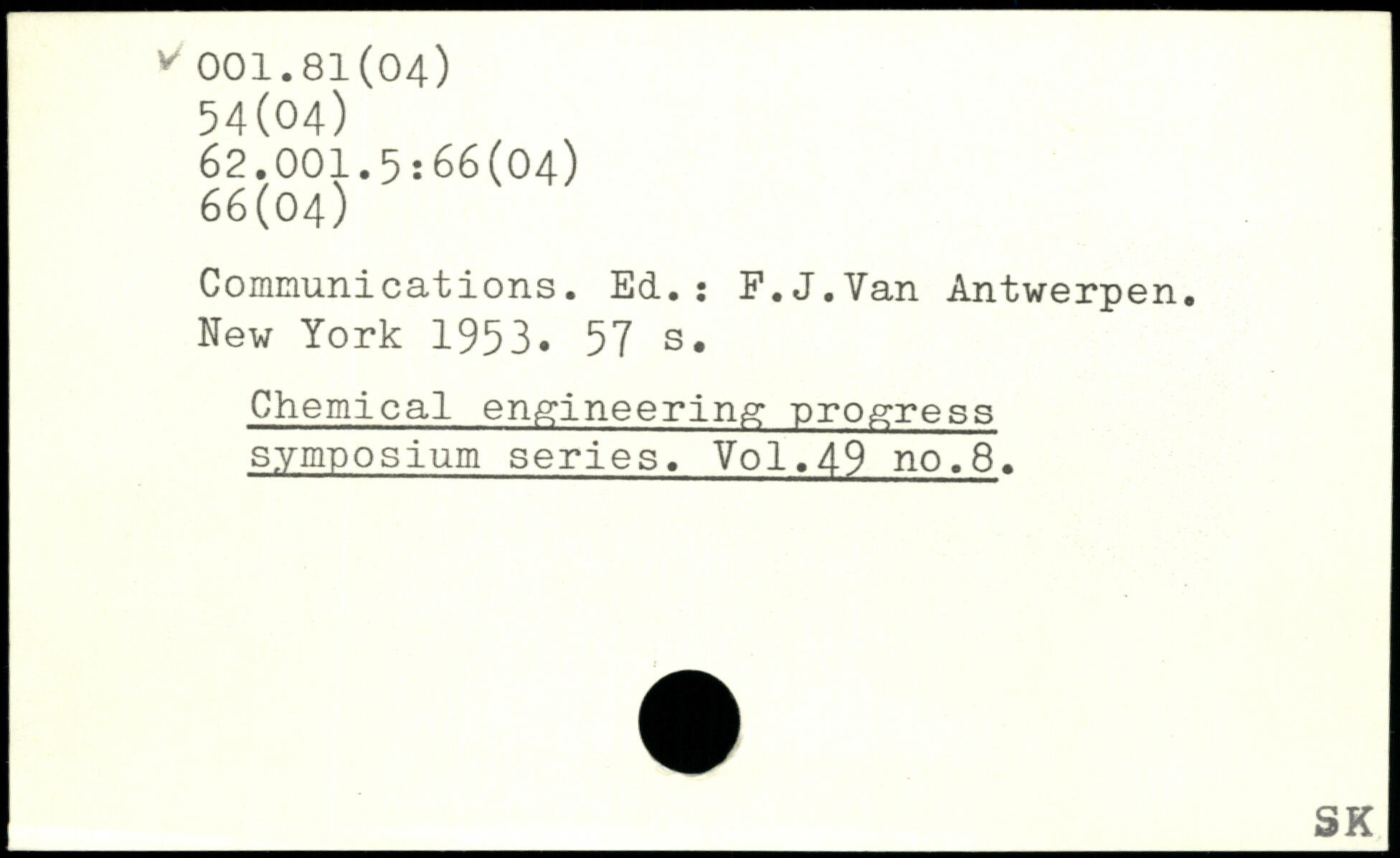 Communications. Ed.s F.J.Van Antwerpen.