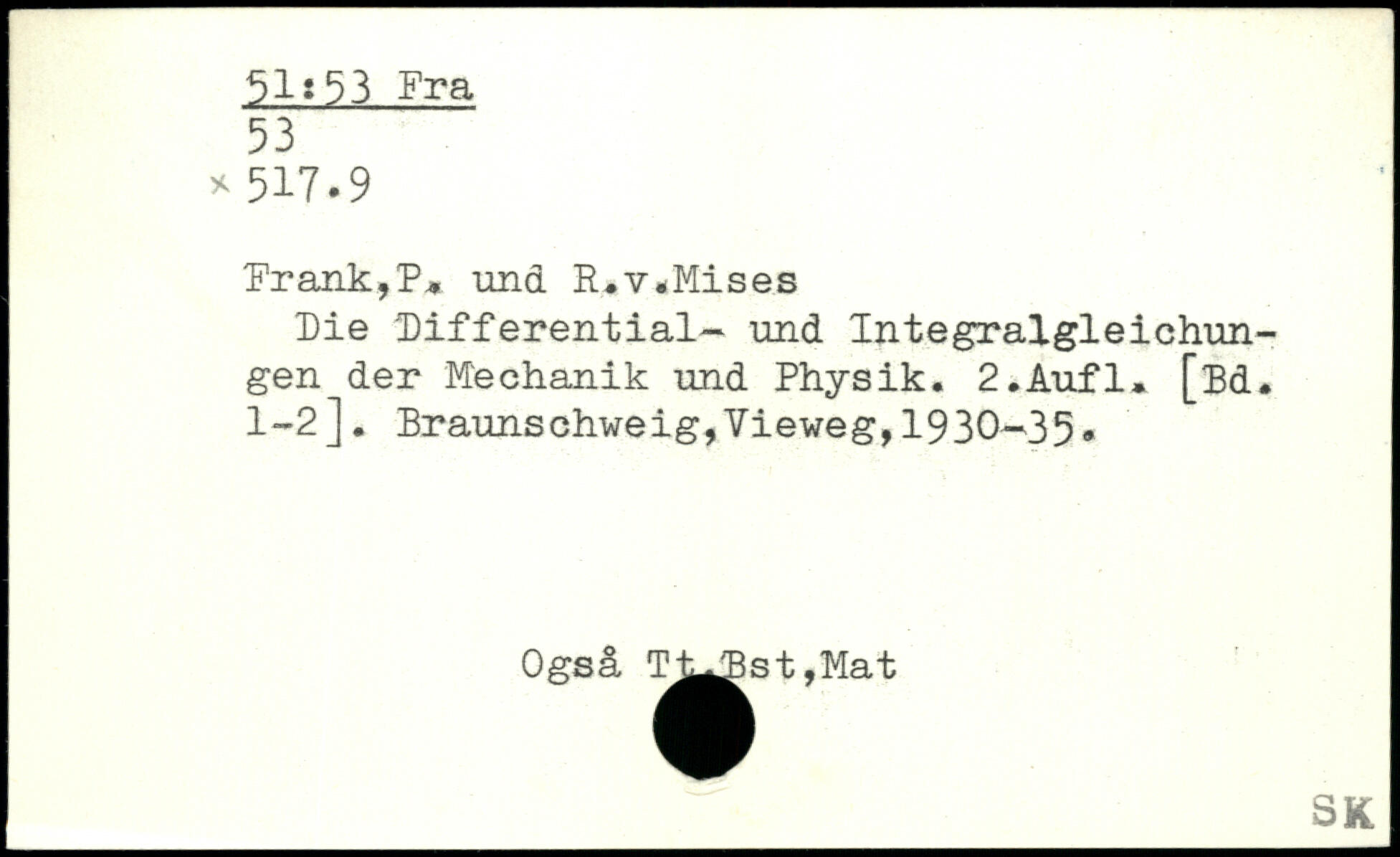 Frank,?. und R.v<Mises Die Differential- und Integralgleichungen der Mechanik und Physik.