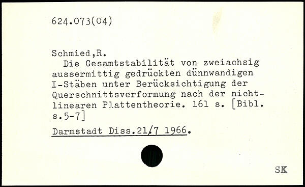 Schmied.,R. Die GesamtStabilität von zweiachsig aussermittig gedruckten dünnwandigen I-Stäben unter Berücksichtigung der Querschnittsverformung nach der nichtlinearen Plattentheorie. l6l s.