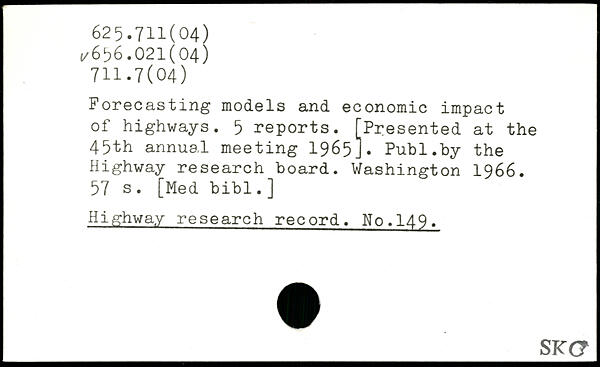 Forecasting models and economic impact of highways. 5 reports. [Presented at the 45th annual meeting 1965J.