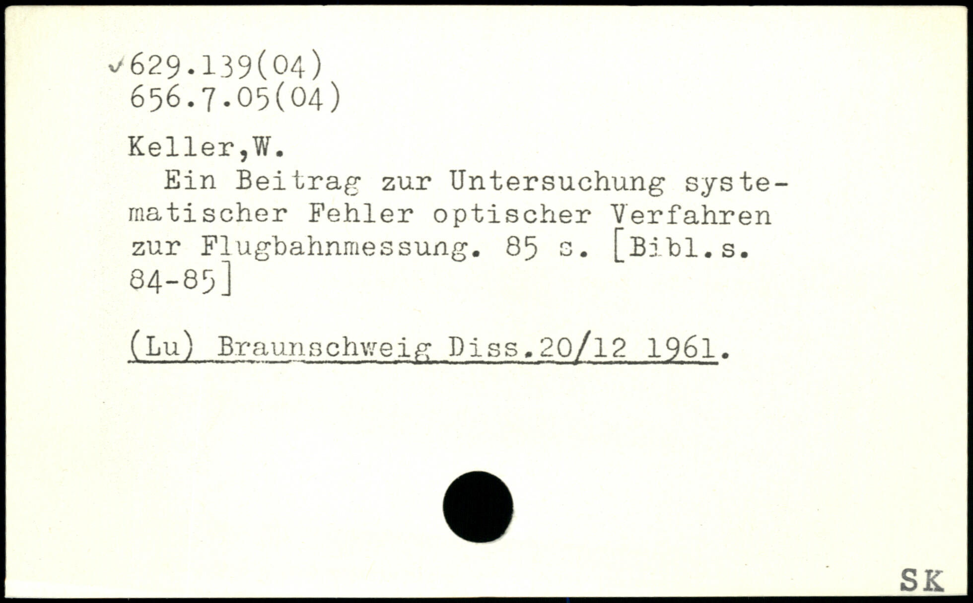Ein Beitrag zur Untersuchung systematischer Fehler optischer Verfahren zur Flughahnmessung.