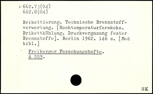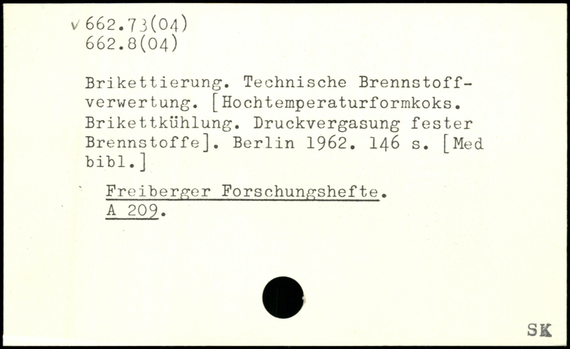 Brikettierung. Technische Brennstoffverwertung. [Hochtemperaturformkoks. Brikettkühlung. Druckvergasung fester Brennstoffe]