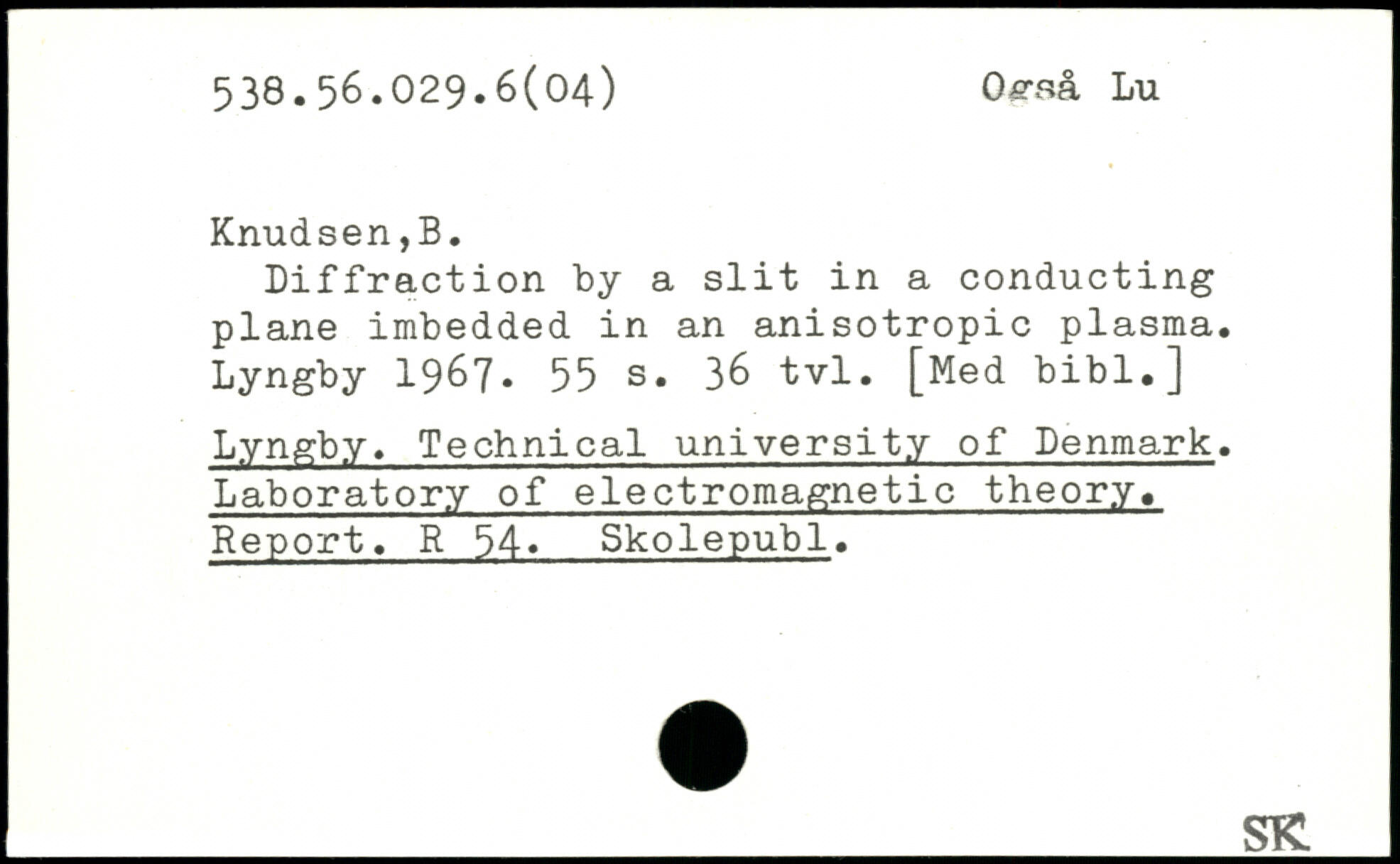Diffraction by a slit in a conducting plane imbedded in an anisotropic plasma. Lyngby 1967