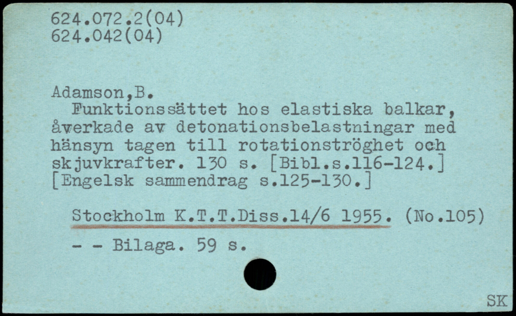 Funktionssättet hos elastiska balkar, åverkade av detonationsbelastningar med hänsyn tagen till rotationströghet och skjuvkrafter.