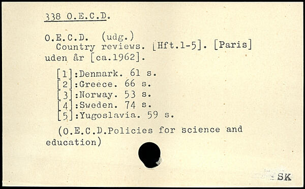 Country reviews. j_Hft.l-5J, uden ar [ca.1962], [l]:Denmark. 6l s. [