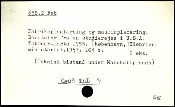 Fabriksplanlægning og maskinplacering. Beretning fra en studierejse i U.S.A. februar-marts 1955, !~ København, ] Udenrigsministeriet ,1957.