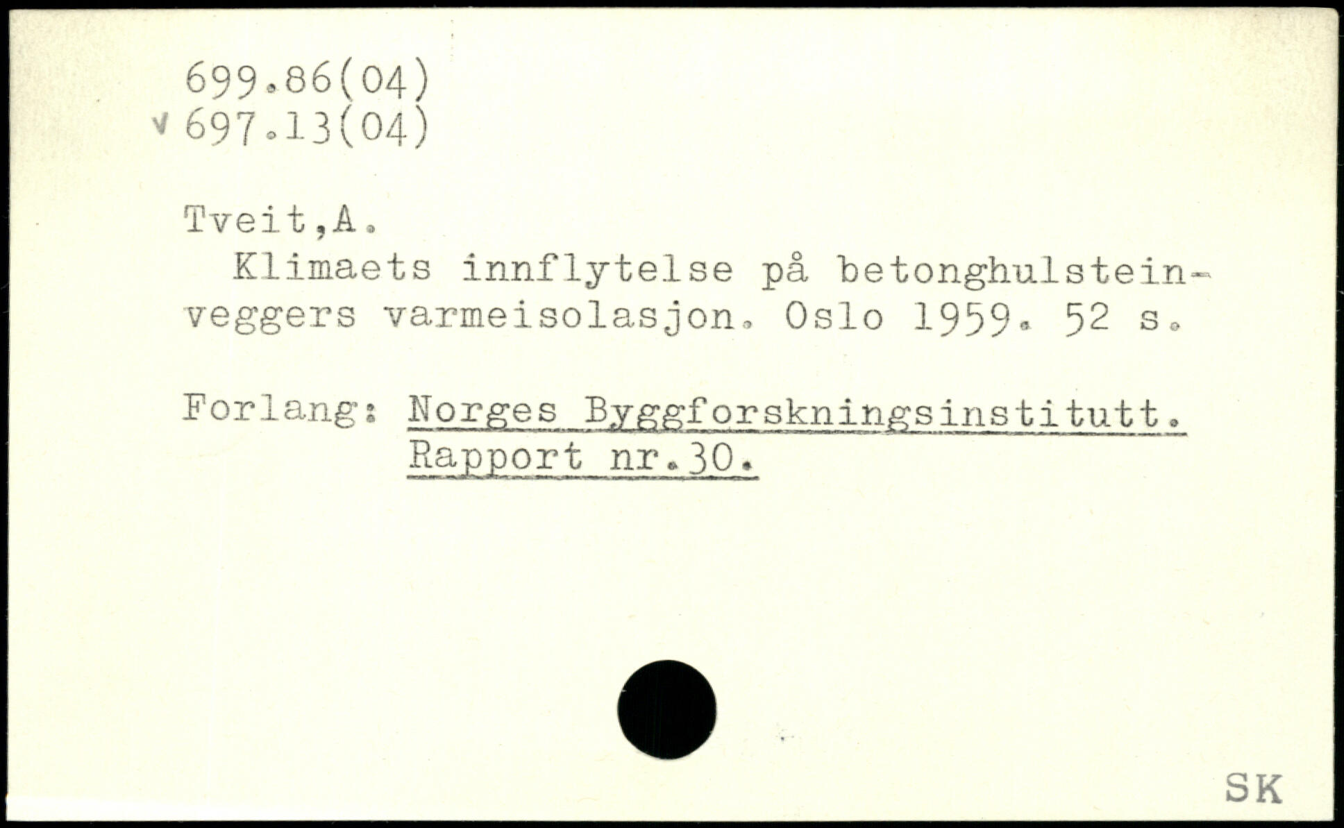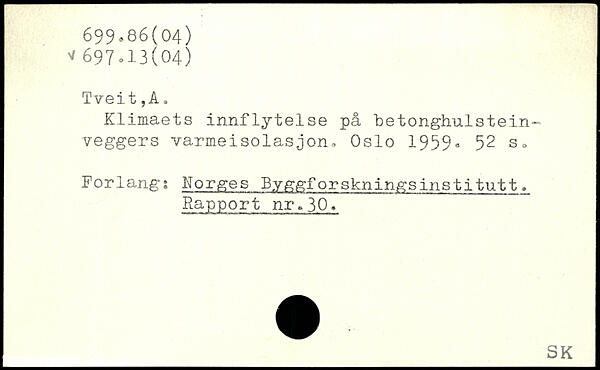 Klimaets innflytelse på ‘betonghulstein-veggers varmeisolasjon, Oslo 1959