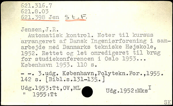 Automatisk .kontrol, Hot er til kursus arrangeret af Dansk Ingeniørforening i samarbejde med Danmarks tekniske Højskole, 1952. Rettet og let omredigeret til brug for studiekonferencen i Oslo 1953...