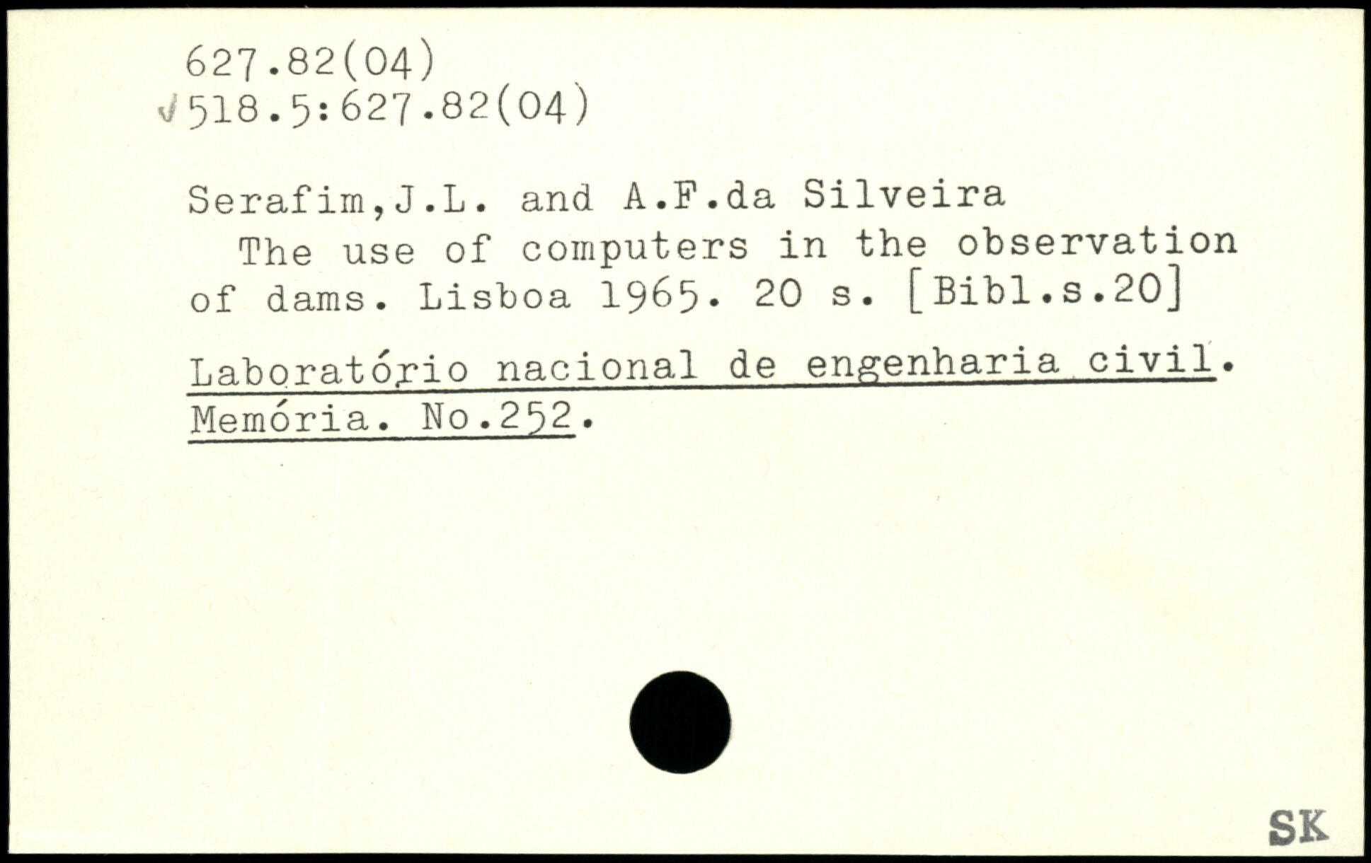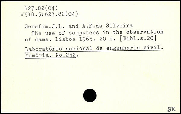 Serafim,J.L. and A.F.da Silveira The use of computers in the observation of dams. Lisboa 1965.