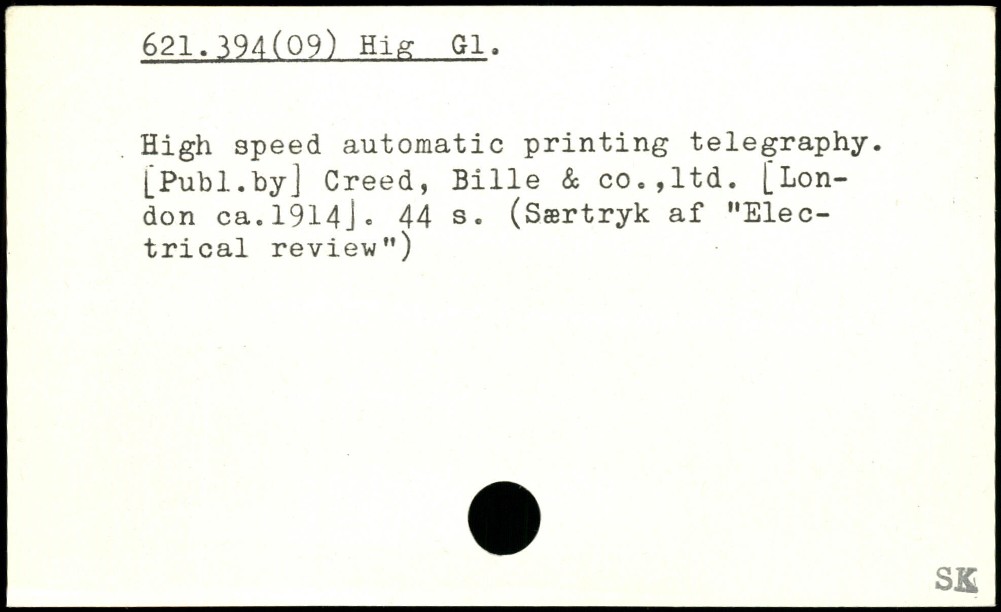 High speed automatic printing telegraphy.
