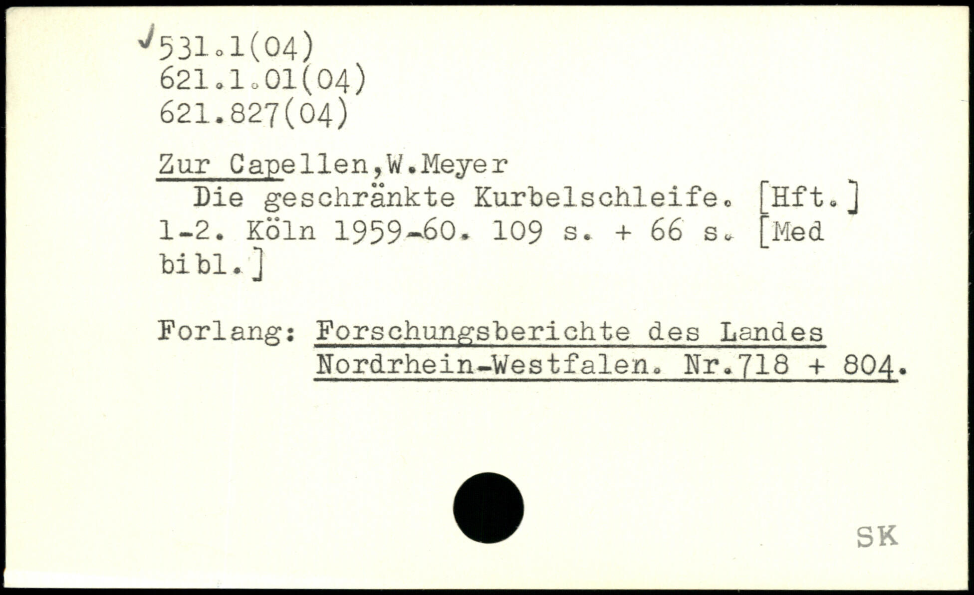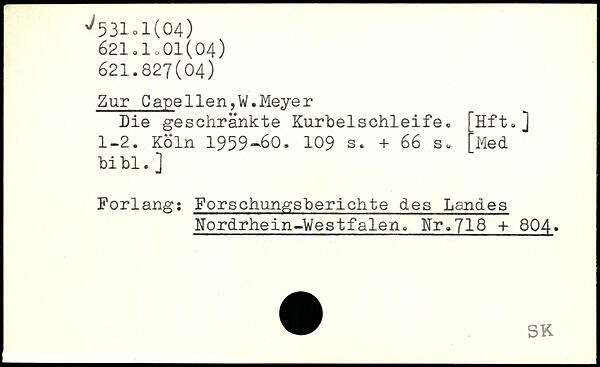 Zur Capellen,W. Meyer Die geschränkte Kurbelschleife, [Hft.] 1-2.