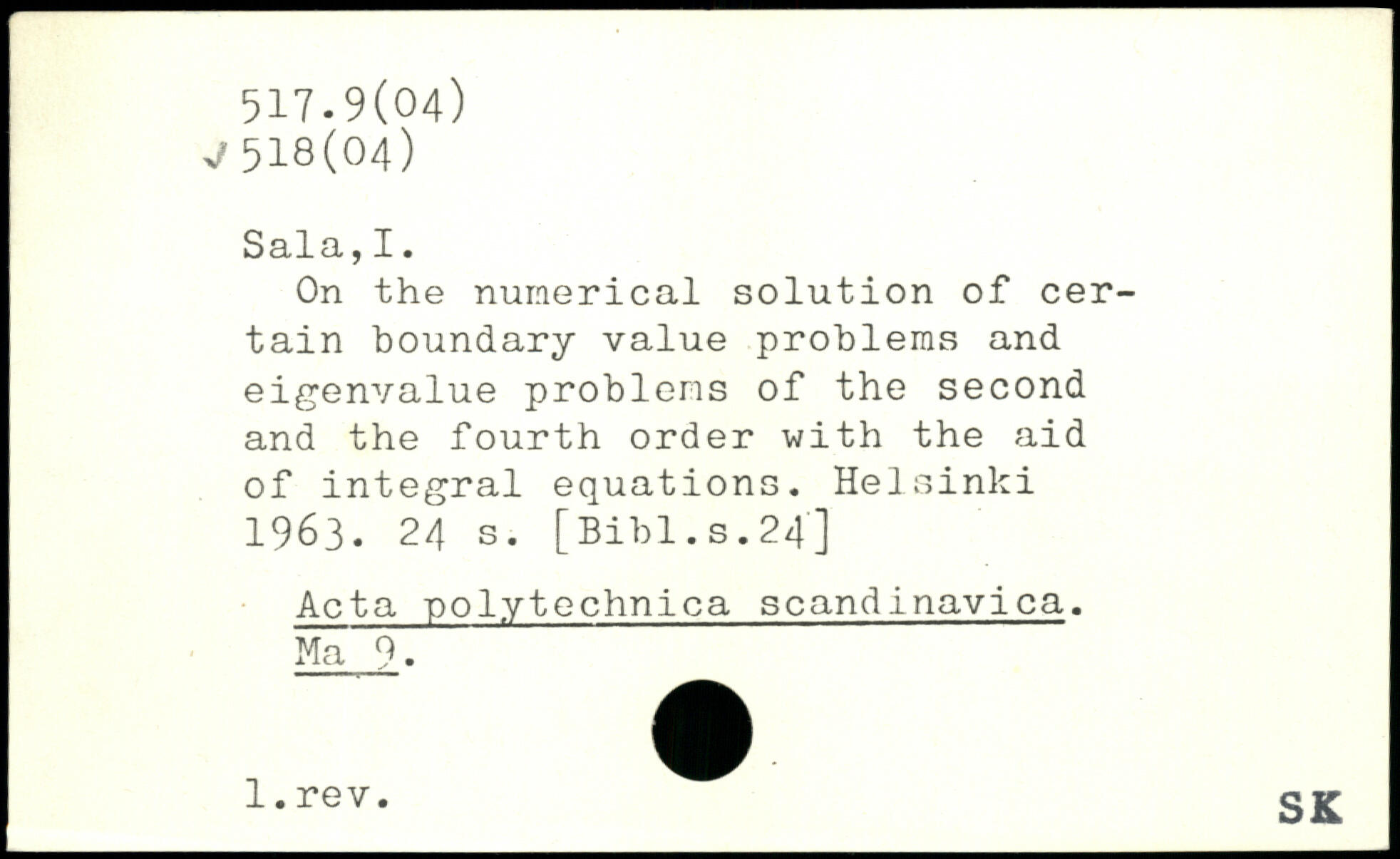On the numerical solution of certain boundary value problems and eigenvalue problems of the second and the fourth order with the aid of integral equations.