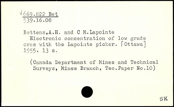 Bettens,A.H. and C M.Lapointe Electronic concentration of low grade ores with the Lapointe picker.