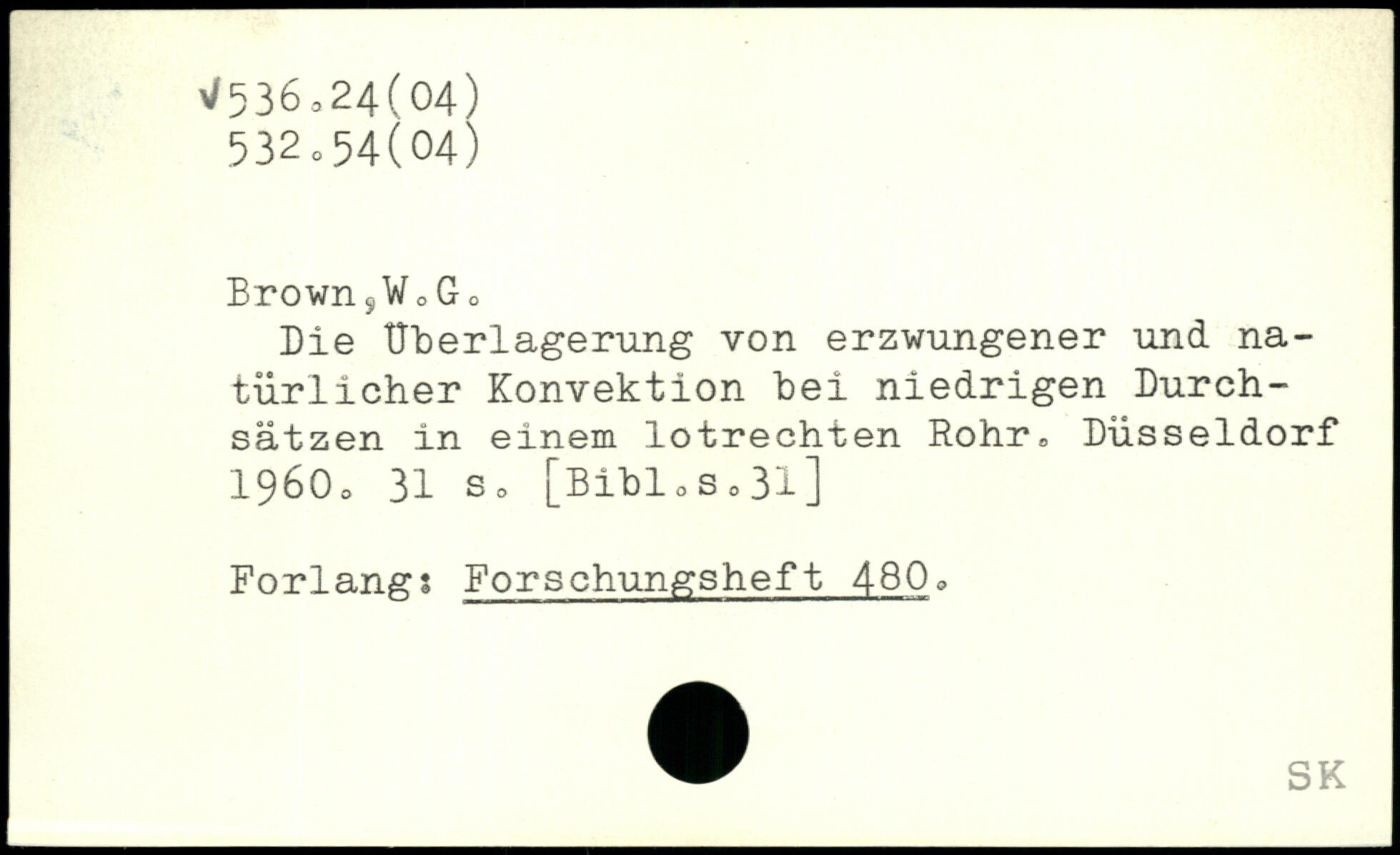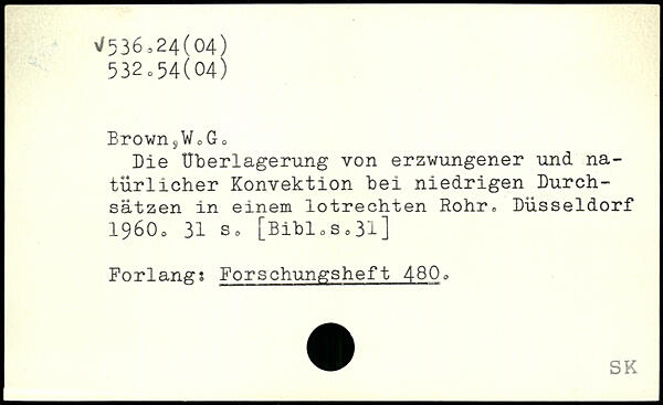 Brown5W0Go Die Überlagerung von erzwungener und natürlicher Konvektion hei niedrigen Durchsätzen in einem lotrechten Rohr, Düsseldorf 19600