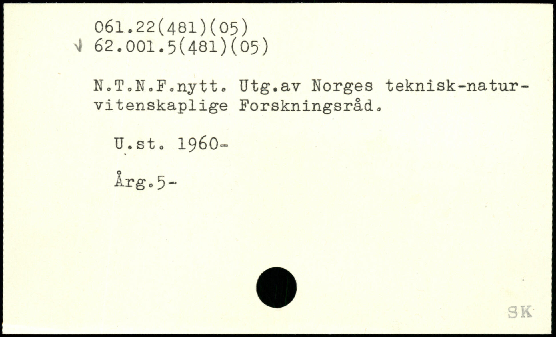 NoT0NsF0nytt, Utg.av Norges teknisk-natur-vitenskaplige Forskningsråd<, U.sto 1960- Årg.5-