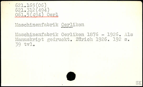 Maschinenfabrik Oerlikon Maschinenfabrik Oerlikon 1876 - 1926. Als Manuskript gedruckt. Zürich 1926.