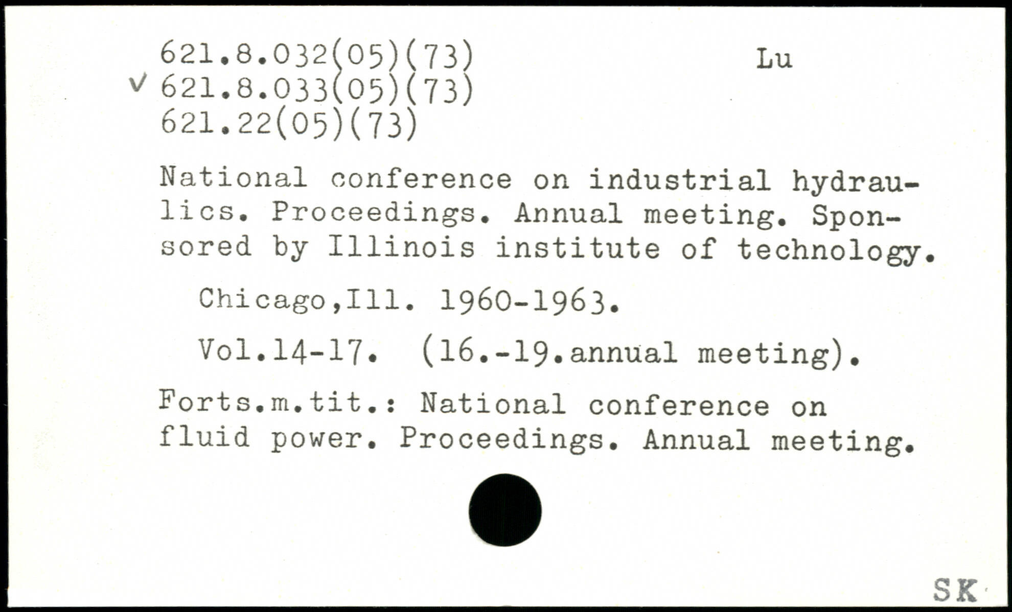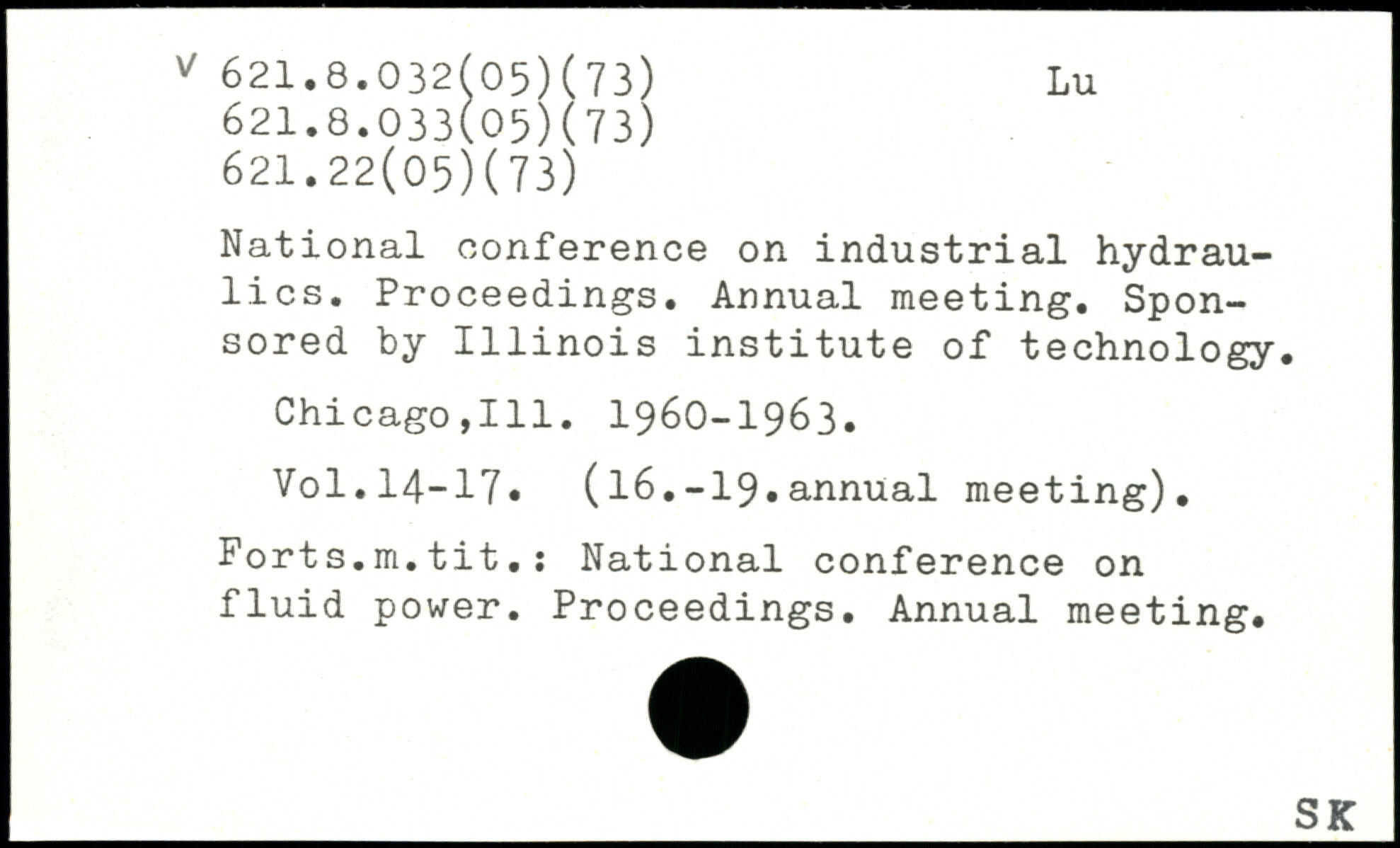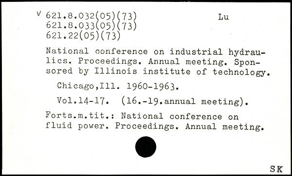 National conference on industrial hydraulics. Proceedings. Annual meeting. Sponsored by 1111nois institute of technology. Chicago,111. 1960-1963.
