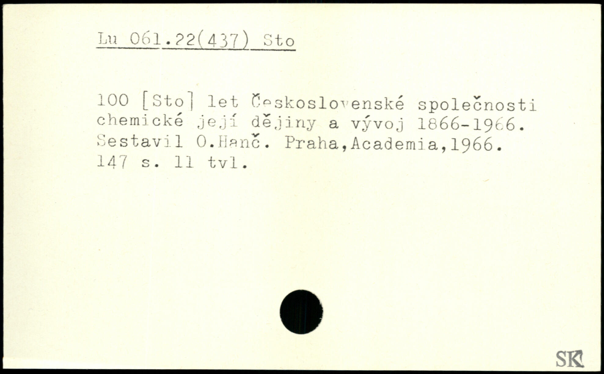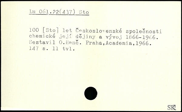 100 [Sto] let £.skoslovenské spolecnosti chemické jejl dejiriy a vÿvoj 1866-1966. Sestavil O.Benc.